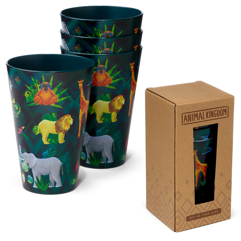 Litríkt og skemmtilegt glasasett úr endurunnu plasti sem inniheldur 4 hluti.