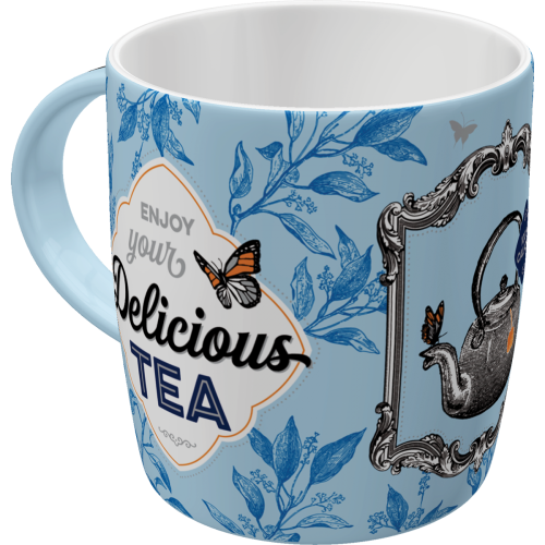 | Hressandi keramik bolli með vönduðu prenti að utanverðu og á handfangi frá Nostalgic-Art. Bollinn er 9cm að hæð, 8,5cm að þvermáli að ofan og tekur um það bil 0,33 lítra af uppáhalds drykknum þínum hvort sem er heitum eða köldum. Bollinn þolir að sjálfsögðu að vera þveginn í uppþvottavél og vera settur í örbylgjuofn. |