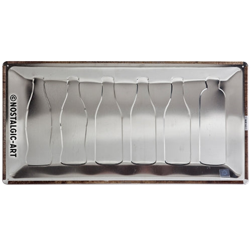 Töff málmskilti. Flöskurnar eru upphleyptar á skiltinu og það er "veðrað"