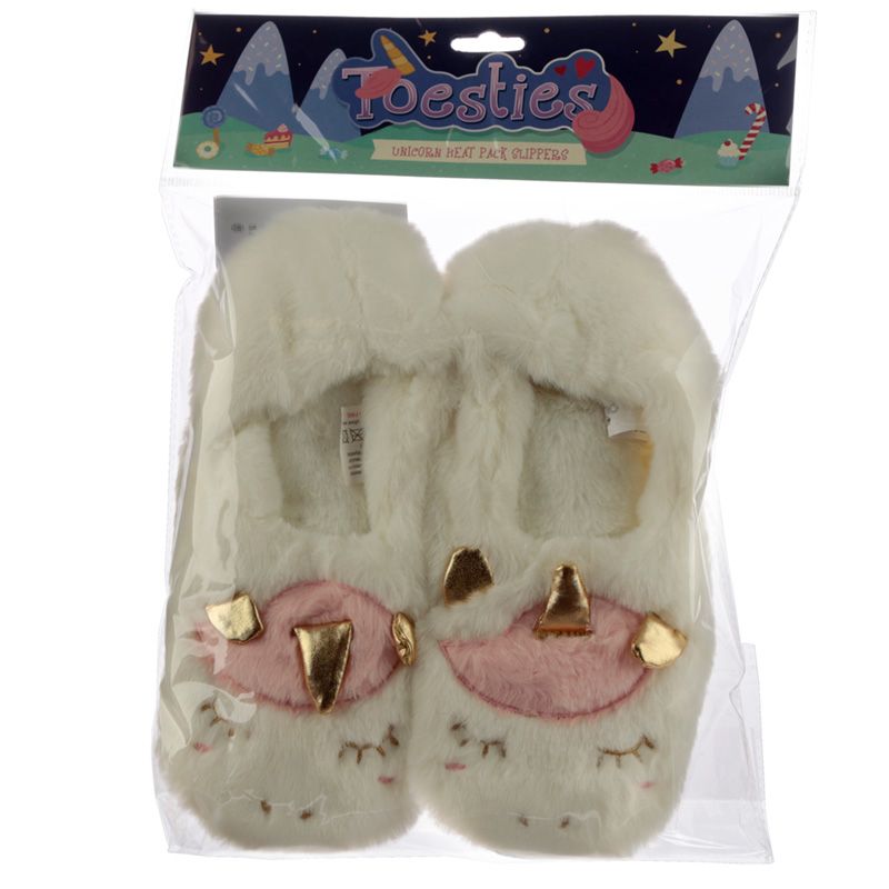 Enchanted Rainbow Unicorn Toesties Heat Pack Warmer Slippers, dámsamlega mjúkir inniskór með vasa fyrir hitapoka, sem fylgja að sjálfsögðu með - hin fullkomna gjöf fyrir kulsæknar og kaldar tásur.