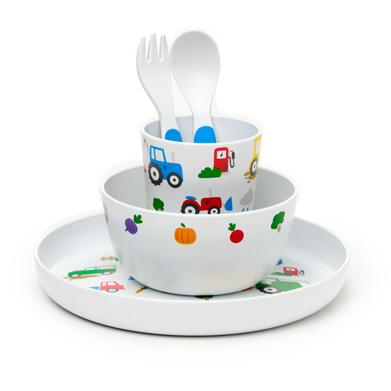 - Innihald setts: Matardiskur, skál, bolli, gaffall og skeið