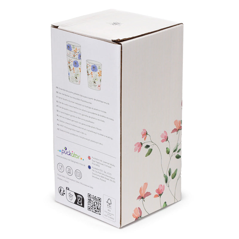 Litríkt og skemmtilegt glasasett úr endurunnu plasti sem inniheldur 4 hluti.