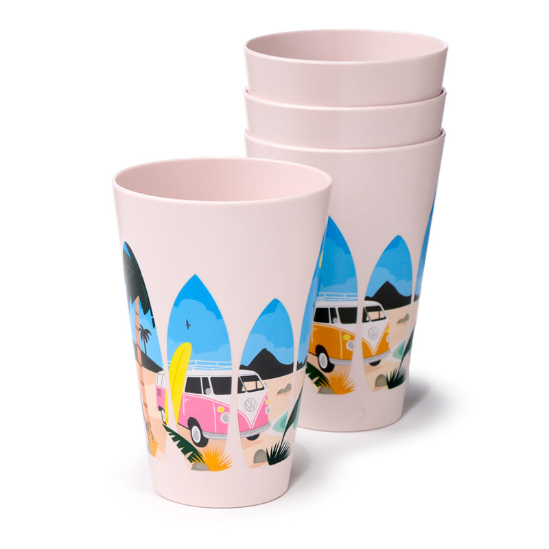 Litríkt og skemmtilegt glasasett úr endurunnu plasti sem inniheldur 4 hluti.