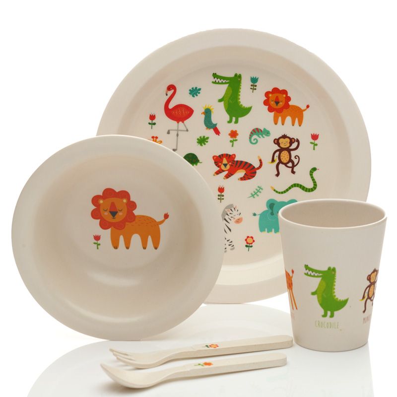Umhverfisvænt, fallegt og litríkt matarsett fyrir þau yngstu, búið til úr bambus.